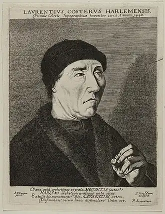 - ↑ a b J.W.Groesbeek: Wie was Laurens Jansz. Coster? Een nieuw licht op zijn persoon, VSP, Utrecht, 1988, ISBN 90-6764-106-5