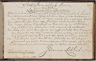 | Bekend van | Album amicorum van Laurentius van Santen (1746-1798), filoloog en repetitor[2] | |