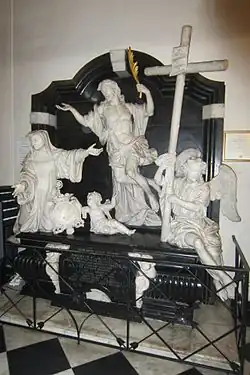 Delvaux beeldhouwde in 1744 het praalgraf van de abdis Barbara de Rivière d'Arschot voor de abdijkerk van Herkenrode voorstellende de verrijzenis van Christus. Het werk verwijst ook naar het Laatste Oordeel. Het is uitgevoerd in late barok of rococostijl. Dit werk werd na de Franse bezetting op het einde van het ancien régime verplaatst naar de O.L.Vrouwebasiliek van Hasselt. Het is een pendant van het 70 jaar vroeger vervaardigde praalgraf van abdis Anna Catharina de Lamboy voorstellende een bewening van Christus. In dit werk zit meer bewogenheid en pathos en het is minder gebonden door beherende lijnen (een denkbeeldige driehoek) dan een barok werk. Dit effect bereikt de beeldhouwer door het gestileerde handenspel en de grillige plooival van de kledij. De ruimte rond de beelden is eerder versplinterd dan gebonden. De uitwerking van de figuren neigt meer naar idealisering dan naar een realistische weergave.