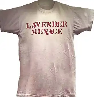 - Dit artikel of een eerdere versie ervan is een (gedeeltelijke) vertaling van het artikel Lavender Menace op de Engelstalige Wikipedia, dat onder de licentie Creative Commons Naamsvermelding/Gelijk delen valt. Zie de bewerkingsgeschiedenis aldaar.