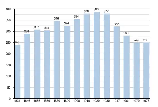 - Bronnen:NIS, Opm:1831 tot en met 1970=volkstellingen, 1976= inwoneraantal op 31 december