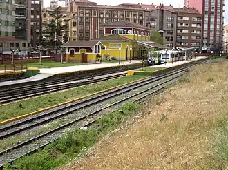 De stad is ook het eindpunt van de lange metersporige FEVE-lijn uit Bilbao, die zijn eigen station heeft. Deze FEVE lijn is ingekort tot aan de rand van de stad, de halte Asunción/Universidad. Er zijn plannen om het stadstraject te integreren in een tramproject[5]. De verbouwing is in 2018 klaar, maar rijden nog steeds geen treinen op het stadstraject. In beide richtingen rijdt er maar een trein per dag op de hele lijn. Er is echter wel voorstadverkeer tot Guardo.