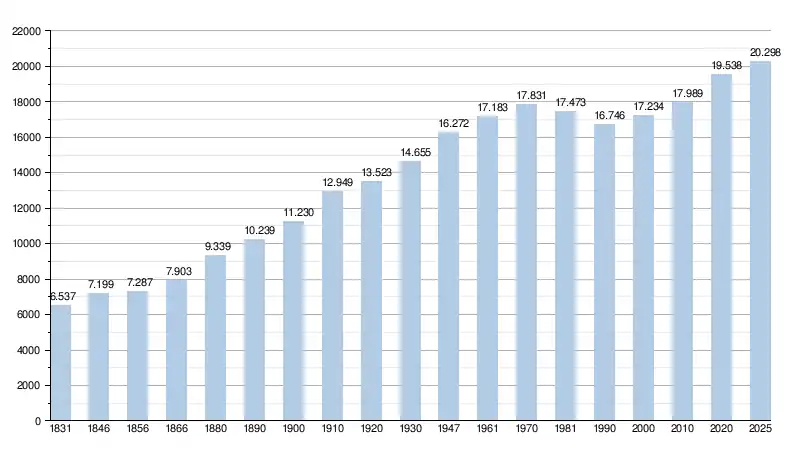 Alle historische gegevens hebben betrekking op de huidige gemeente, inclusief deelgemeenten, zoals ontstaan na de fusie van 1 januari 1977.