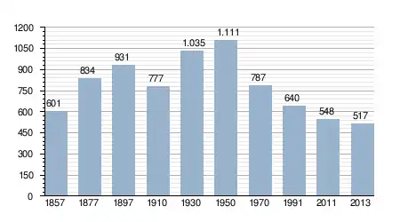- Bron: INE, 1857-2011: volkstellingen