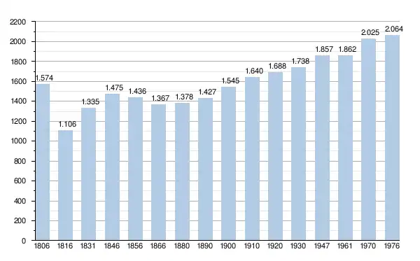 - Bronnen:NIS, Opm:1806 tot en met 1970=volkstellingen; 1976 = inwoneraantal op 31 december