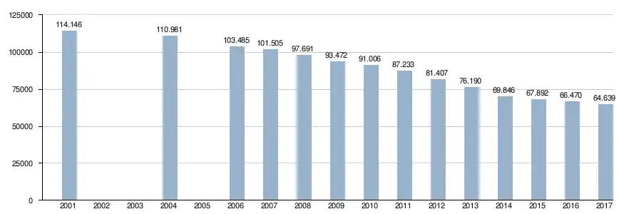 - Gemiddeld verspreide oplage van de Leeuwarder Courant tussen 2001 en 2017