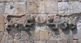 De Leeuwenpoort bevindt zich in de oostelijke muur en markeert het begin van de Via Dolorosa, de traditionele christelijke opvatting van de laatste gang van Jezus uit de gevangenis naar zijn kruisiging. In de buurt van de boog van de poort zijn links en rechts twee afbeeldingen van luipaarden, vaak verward met leeuwen. Ze werden er door sultan Suleiman de Grote geplaatst om de Ottomaanse nederlaag van de mammelukken in 1517 te gedenken. De legende wil dat Suleimans voorganger Selim I droomde van leeuwen die hem gingen opeten, vanwege zijn plannen om de stad met de grond gelijk te maken. Hij werd gespaard na de belofte om de stad te beschermen door het bouwen van een muur om de stad. Dit leidde ertoe dat de leeuw het heraldieke symbool werd van Jeruzalem.[2] Jeruzalem was echter al sinds Bijbelse tijden de hoofdstad van het koninkrijk Juda, waarvan de leeuw het symbool was (Genesis 49:9).[3]