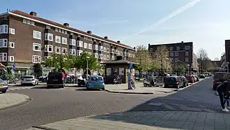 De bebouwing aan het plein verrees rond 1930 en vertoont hier en daar sporen van de Amsterdamse Schoolstijl. Aan de noordzijde van het plein staan op de huisnummers 1-5 woon- en winkelpanden naar een ontwerp van Jordanus Roodenburgh; het maakt deel uit van een bouwblok dat benoemd is tot gemeentelijk monument. De woningen aan de oostzijde van het plein (huisnummer 9-29) werden samen met de aansluitende panden Weissenbruchstraat 11-25 ontworpen door Arend Jan Westerman. Aan de noordwestzijde van het plein werd in 1933/1934 een transformatorhuisje naar ontwerp van de Dienst der Publieke Werken gebouwd met gevlochten metselwerk.[1] Aan de zuidoostzijde staat/stond achter een betonnen muur een rioolgemaal.