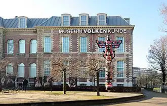 Wereldmuseum Leiden, totempaal (8 m), gevelinstallatie (Remy Jungerman) -