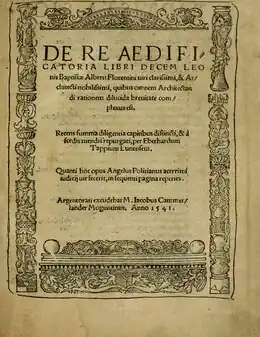 - Rykwert, J., Leon Battista Alberti : On the Art of Building in Ten Books, London, 1988, p. 442.