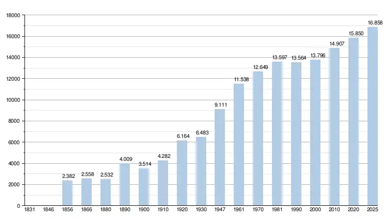 Alle historische gegevens hebben betrekking op de huidige gemeente, inclusief deelgemeenten, zoals ontstaan na de fusie van 1 januari 1977.