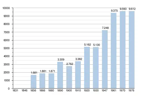 - Bronnen:NIS 1831 t/m 1970=volkstellingen; 1976 = inwonertal per 31 december