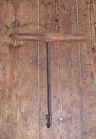 Een lepelboor werd gebruikt voor het vergroten van boorgaten. Allereerst werd met gewone handboren en ronde boortjes een steeds groter gat gemaakt, dat daarna met lepelboren in oplopende diameter groter werd gemaakt.