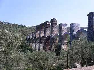 - Aquaduct bij Moria, gebouwd in de Romeinse tijd (2e - 3e eeuw n.C.) 170 meter lang met 17 bogen en 26 meter hoog. Werd gebruikt om water van de bronnen bij Agiasos 27 kilometer naar Mytilini te laten stromen. Capaciteit wordt geschat op 127 000 m3 water per dag. Het heeft indertijd enkele eeuwen gefunctioneerd.