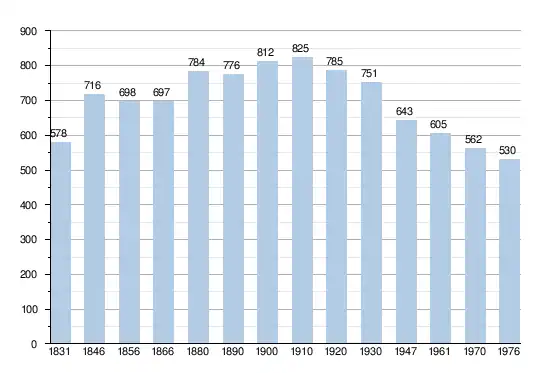 - Bronnen:NIS, Opm:1831 tot en met 1970=volkstellingen, 1976= inwoneraantal op 31 december