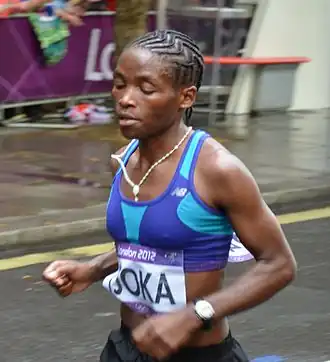 Mamorallo Tjoka in de olympische marathon voor vrouwen