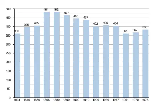 - Bronnen:NIS, Opm:1831 tot en met 1970=volkstellingen, 1976= inwoneraantal op 31 december