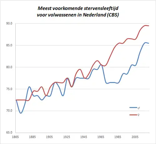 - ↑ CBS, Historische overlevingstafels voor Nederland, 7 november 2011