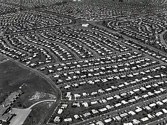 De onderstaande figuur toont nabijgelegen plaatsen in een straal van 8 km rond Levittown.