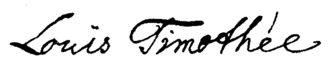 - Dit artikel of een eerdere versie ervan is een (gedeeltelijke) vertaling van het artikel Louis Timothee op de Engelstalige Wikipedia, dat onder de licentie Creative Commons Naamsvermelding/Gelijk delen valt. Zie de bewerkingsgeschiedenis aldaar.
