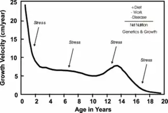 De studie van lichaamslengte staat bekend als auxologie. Het menselijk lichaam groeit het hardst gedurende het 1e en 2e levensjaar en tijdens de puberteit. Vrouwen bereiken hun definitieve lichaamslengte eerder dan mannen, doordat bij vrouwen de groeischijven eerder gesloten zijn. Bij het ouder worden neemt de lichaamslengte vrijwel altijd vroeg of laat af. Bij sommige bevolkingsgroepen kan dit al op middelbare leeftijd beginnen, waarbij zaken als milieu en gezondheid een grote rol spelen. De krimp bij het ouder worden wordt veroorzaakt door het afnemen in dikte van de tussenwervelschijven, die weer het gevolg is van zaken als desiccatie en atrofie van de zachte weefsels.