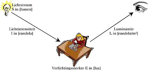 Verlichtingssterkte of verlichtingsdichtheid (Engels: Illuminance , Duits: Beleuchtungsstärke )