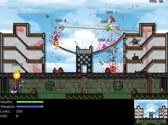 Er zijn drie speelmanieren, 'deathmatch' (vechten tot de dood), 'game of tag' (tikkertje) en 'capture the flag' (vlag veroveren). Het kan met twee spelers tegelijk gespeeld worden, of een speler tegen de computer. De populariteit van het spel ligt vooral bij de snelle mens tegen mens-actie.