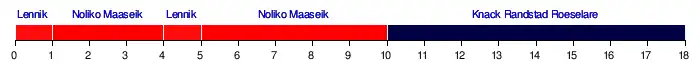 | 1 | Knack Randstad Roeselare | 18 | 17 | 0 | 0 | 1 | 51 | 13 | 3,92 | 51 | PO |