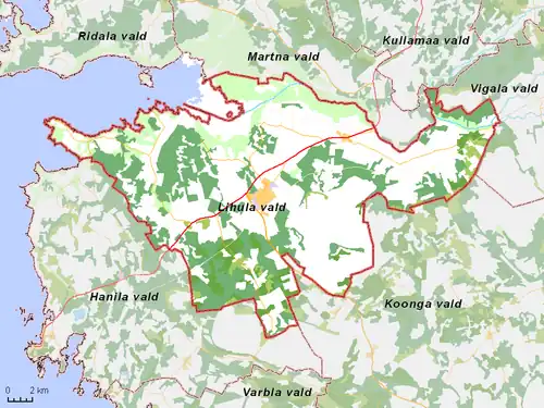 Naast de stad Lihula (1246 inwoners op 01.01.2016) omvatte de gemeente 25 dorpen, waarvan alleen Kirbla en Tuudi meer dan 100 inwoners tellen. De hoofdplaats Lihula, die in 1993 de status van stad kreeg, vormde tot 1999 een afzonderlijke stadsgemeente.