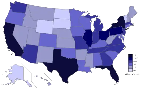 | 1 | Californië | 39.512.223 | 53 | 55 |