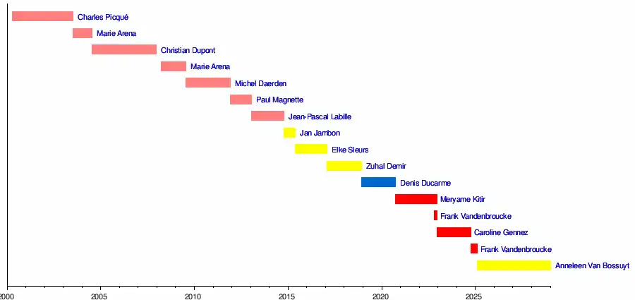 sp.a/Vooruit | 1 oktober 2020 | 17 december 2022[1] | De Croo | Minister van Grootstedenbeleid | |