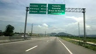 - BR-101 - Een weg, deels uitgevoerd als snelweg onder andere tussen Rio Bonito en Rio de Janeiro.[7][8] In de staat São Paulo wordt de weg SP-55 (Rodovia Padre Manuel da Nóbrega/Rodovia Doutor Manuel Hipólito Rego) genoemd. In 2024 werd 50 kilometer Contorno Viário da Grande Florianópolis geopend.[9]