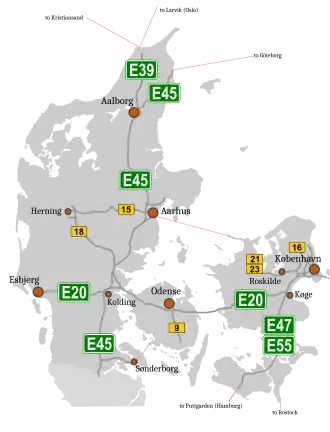 - ↑ Wegenwiki: Administratieve wegnummers in Denemarken. Gearchiveerd op 18 juli 2023.