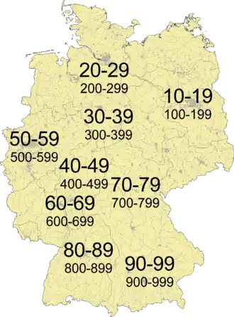 - 6 = Regio Frankfurt am Main, zuidelijk Rijnland-Palts en Saarland;