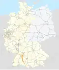 HaFraBa, Bergstraßenautobahn, Rheintalautobahn, Rechtsrheinische Autobahn | Hattenbacher Dreieck – Frankfurt am Main – Darmstadt – Heidelberg – Karlsruhe – Freiburg im Breisgau – Weil am Rhein (– (Mulhouse |