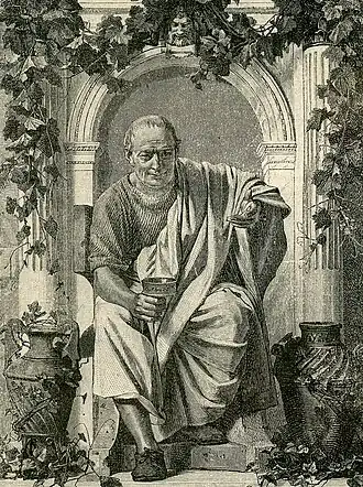 Horatius, detail houtsnede in L'illustrazione popolare (1884) door Anton von Werner - Ab ovo usque ad mala