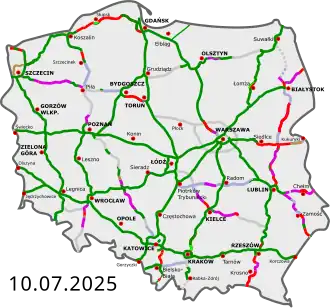 | S3 | Świnoujście – Lubawka (grens) | 478,2 km * | 154,15 km | 90,55 km | |