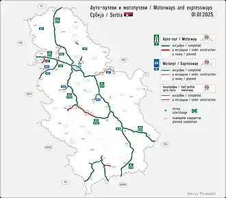 Op 20 maart 2024 werd een nieuwe wegklasse ingevoerd, de motoput (мотопут, autoweg of expresweg met 2x2 rijstroken maar zonder vluchtstrook, blauw-wit bewegwijzerd met prefix 'M') [2][3]. De komende expreswegen zijn genummerd van M1 tot en met M19.[4][5][6]