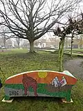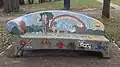 Parkstadbank en Historische bank bij de ingang vanaf de parkeerplaats achter het stadion. | ||