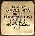 HIER WOONDE BENJAMIN BLOCQ GEB. 1884 GEDEPORTEERD 1943 UIT WESTERBORK VERMOORD 14-5-1943 SOBIBOR |