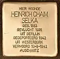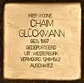 HIER WOONDE ARON BLOCQ GEB. 1909 GEDEPORTEERD UIT WESTERBORK VERMOORD 7-2-1945 GROSS-ROSEN |