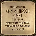 - ↑ Joods Monument: Chaim Hirsch Zimet. Gearchiveerd op 23 maart 2023.