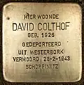 HIER WOONDE DAVID BAREND GEB. 1905 GEARRESTEERD 23-6-1942 GEDEPORTEERD UIT WESTERBORK VERMOORD 30-4-1943 AUSCHWITZ |