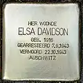 HIER WOONDE ELSA DAVIDSON GEB. 1916 GEARRESTEERD 7.9.1943 VERMOORD 22.10.1943 AUSCHWITZ |