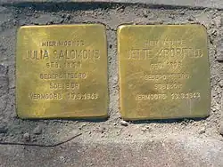 - ↑ RTV Drenthe 2 oktober 2013: Laatste Stolpersteine in Emmen gelegd YouTube. Gearchiveerd op 5 april 2023.