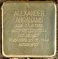 ALEXANDER ABRAHAMS GEB. 14.9.1943 GEDEPORTEERD 1943 UIT DRANCY VERMOORD 23.11.1943 AUSCHWITZ |