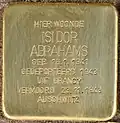 HIER WOONDE ISIDOR ABRAHAMS GEB. 16.1.1941 GEDEPORTEERD 1943 UIT DRANCY VERMOORD 23.11.1943 AUSCHWITZ |