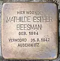 HIER WOONDE MATHILDE ESTHER BEESMAN GEB. 1884 VERMOORD 31.8.1942 AUSCHWITZ |