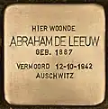 HIER WOONDE ABRAHAM DE LEEUW GEB. 1887 VERMOORD 12-10-1942 AUSCHWITZ |