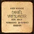 HIER WOONDE DANIËL VRIESLANDER GEB. 1941 VERMOORD 21-5-1943 SOBIBOR |